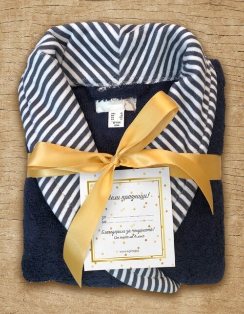Halat Royal Blue e novoto izkushenie za komfort sled banyata. Halatut e izraboten ot 100% purvoklasen pamuk i e neveroyatno mek i luksozen.Desenut podchertava jenstvenostta. Tozi halat se izrabotva v universalni razmeri S/M, L/XL, XXL. Blagodarenie na krasivata shal yaka, tozi model pridobiva oshte edna funkciya - moje da se izpolzva kato luksozen penoar za pulnocenno prekarvane na vremeto u doma. Poglezete lyubim chovek!Zaradvayte dama, mayka ili lyubima nezavisimo ot povoda, kato y predostavite praktichen i bojestven halat, koyto nejno gali izvivkite na tyaloto. Popiva perfektno i izsuhva burzo. Vreme e da se vuzpolzvate ot tezi neustoimi predlojeniya za podaruci za vas ili vashite blizki! Vie zaslujavate da se potopite v rayska gradina!