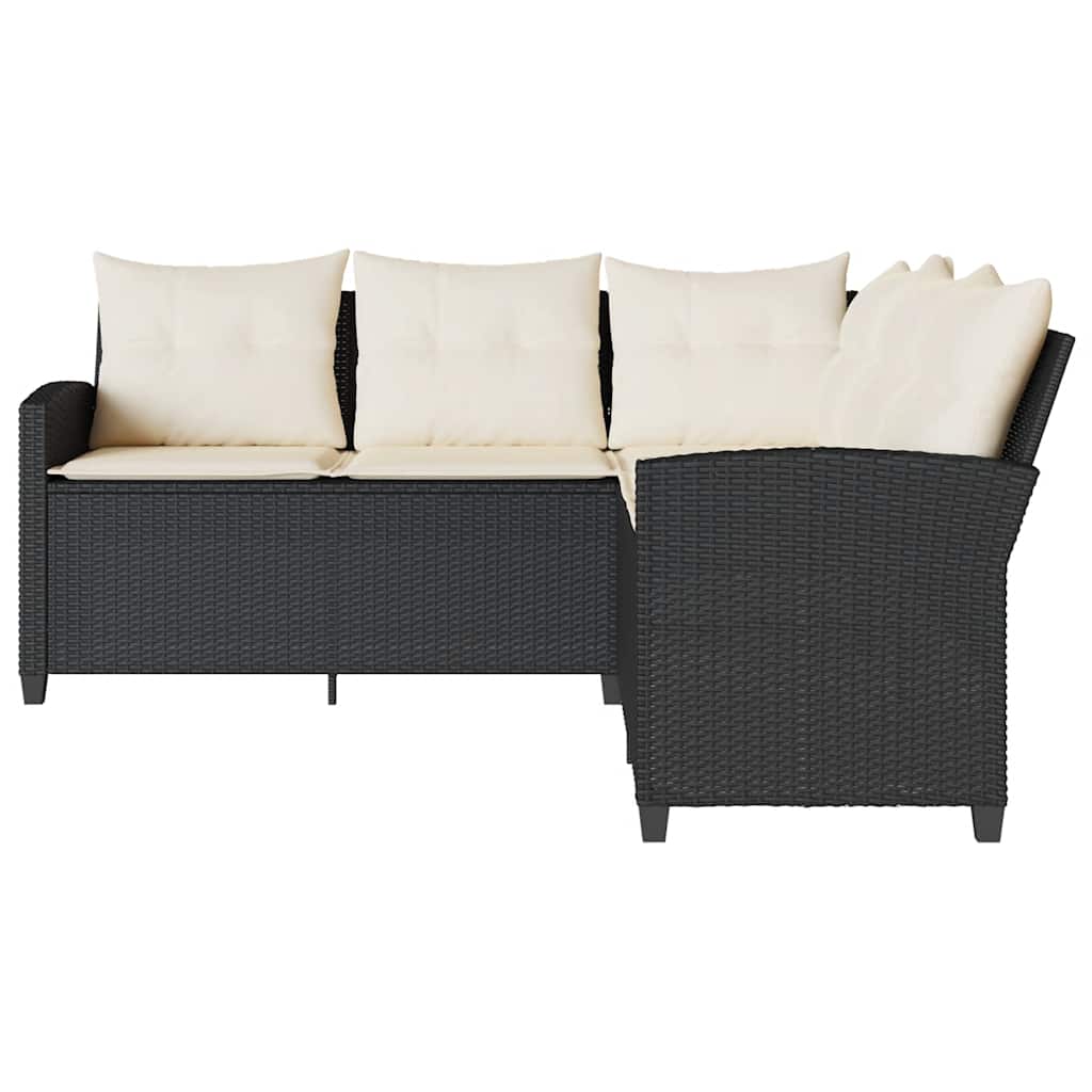 Комплект Г-образно канапе с възглавници черен полиратан