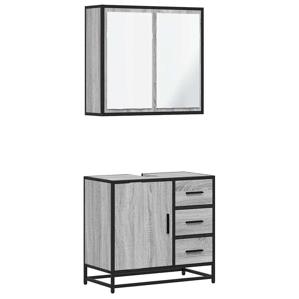 Комплект мебели за баня от 2 части сив сонома инженерно дърво
