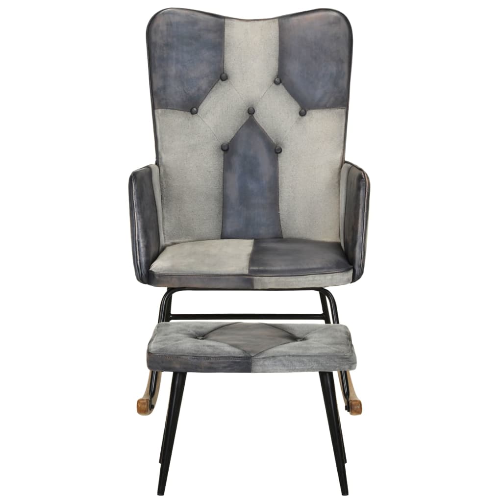Люлеещ се стол с табуретка, сив, естествена кожа и платно