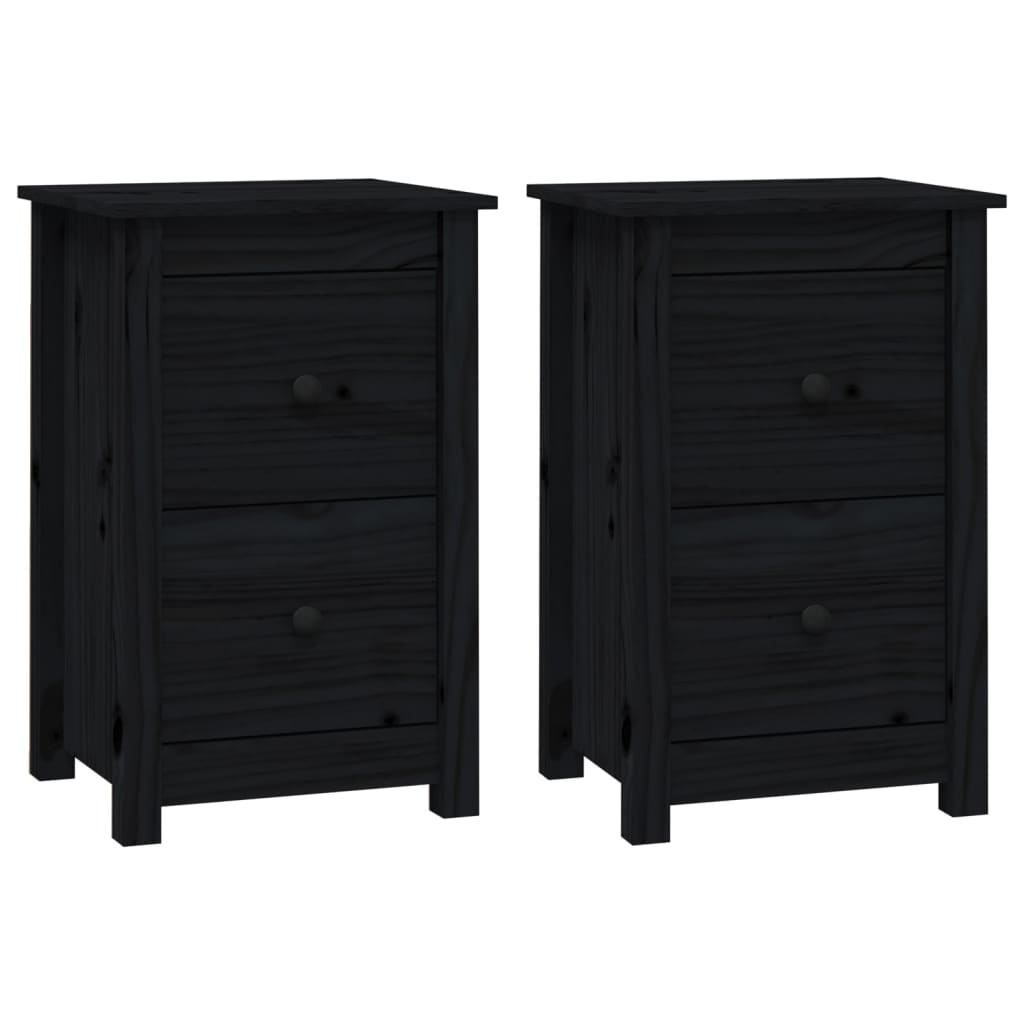 Нощни шкафчета, 2 бр, черни, 40x35x61,5 см, борово дърво масив