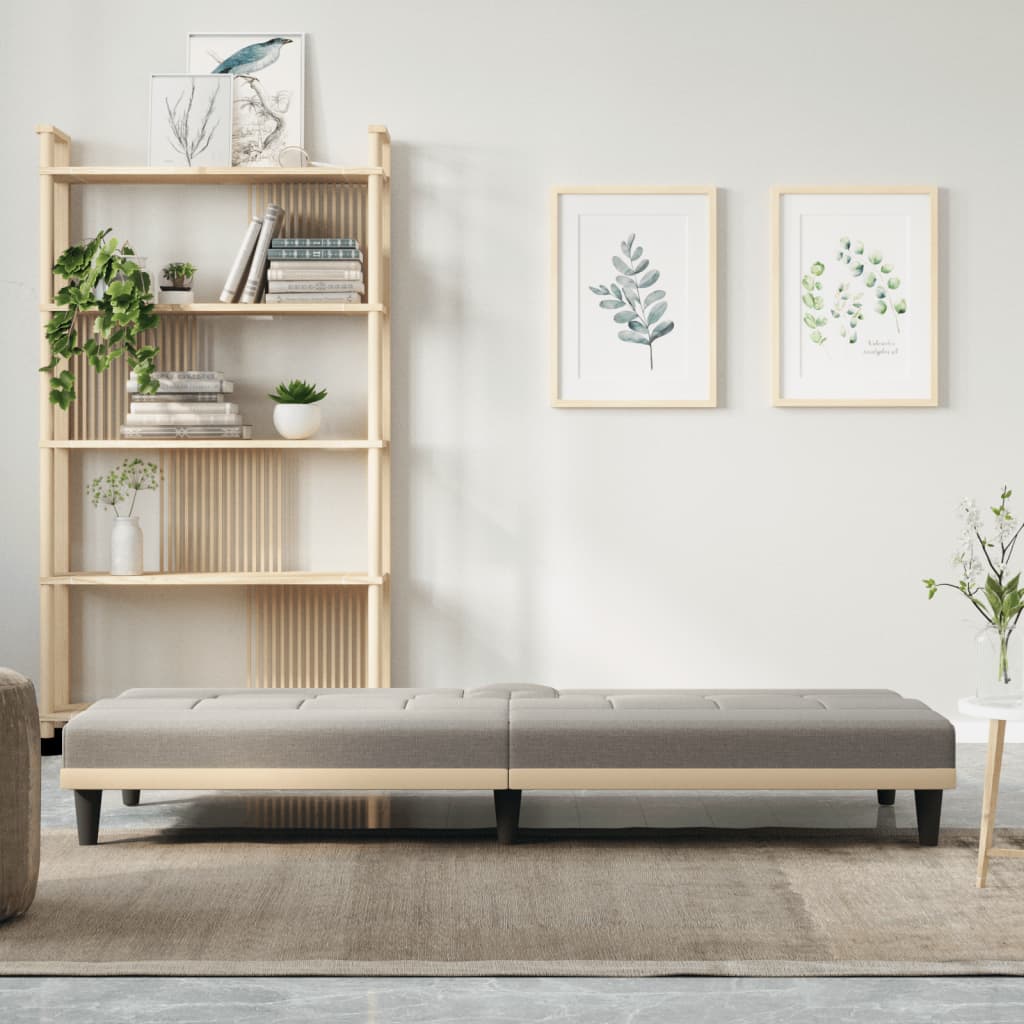 Tova raztegatelno kanape e perfektno za gosti s prespivane, kato sushtevremenno osiguryava udobno myasto za syadane prez denya. Izdurjliva tukan: Tukanta se otlichava sus sempul i izchisten vid i e dishashta i izdrujliva.Reguliruema oblegalka: Oblegalkata se regulira v 3 pozicii spored vashite nujdi.Udobna sedalka: Raztegatelniyat divan e mnogo udoben s debelo podplateni sedalki i oblegalka.Praktichen dizayn: Kanapeto se predlaga sus sguvaema masichka za chay s dve postavki za chashi. Sushto taka masata za chay razpolaga s 2 vida USB portove, koito mogat da se izpolzvat za zarejdane na vashite telefoni, tableti i dr.Zdrava i stabilna ramka: Ramkata ot shperplat na divana osiguryava zdravina i stabilnost. Dobre e da se znae:Produktut ima USB konektor, no ne e vklyuchen sertificiran iztochnik na zahranvane ot 5V USB.Za da bude sglobyavaneto vuzmojno nay-lesno, vseki produkt se dostavya s rukovodstvo.Cvyat: TaupeMaterial: Plat (100% poliester), shperplat, plastmasaMaterial na pulneja: PyanaObshti razmeri: 200 x 89 x 70 sm (Sh x D x V)Obshti razmeri (kogato e napulno raztegnat): 200 x 100 x 33 sm (Sh x D x V)Shirina na sedalkata: 200 smDulbochina na sedalkata: 55 smVisochina na sedalkata ot zemyata: 33 smVisochina na krakata: 15 smRazpolaga s 1,3 m USB konektorMaksimalen kapacitet na natovarvane (na myasto): 110 kg Tozi produkt se zahranva s DC 5V, no sertificiraniyat 5V USB iztochnik na zahranvane ne e vklyuchen v komplekta. Po-visokoto naprejenie moje da dovede do pregryavane na ustroystvoto i da dovede do povreda na ustroystvoto i potencialen risk ot pregryavane i pojar.