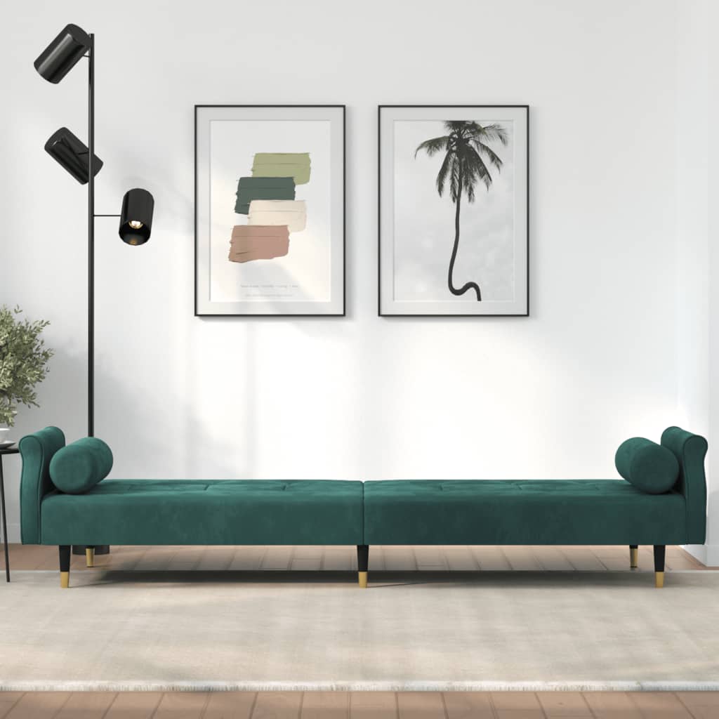 Разтегателен диван с възглавници, тъмнозелен, кадифе